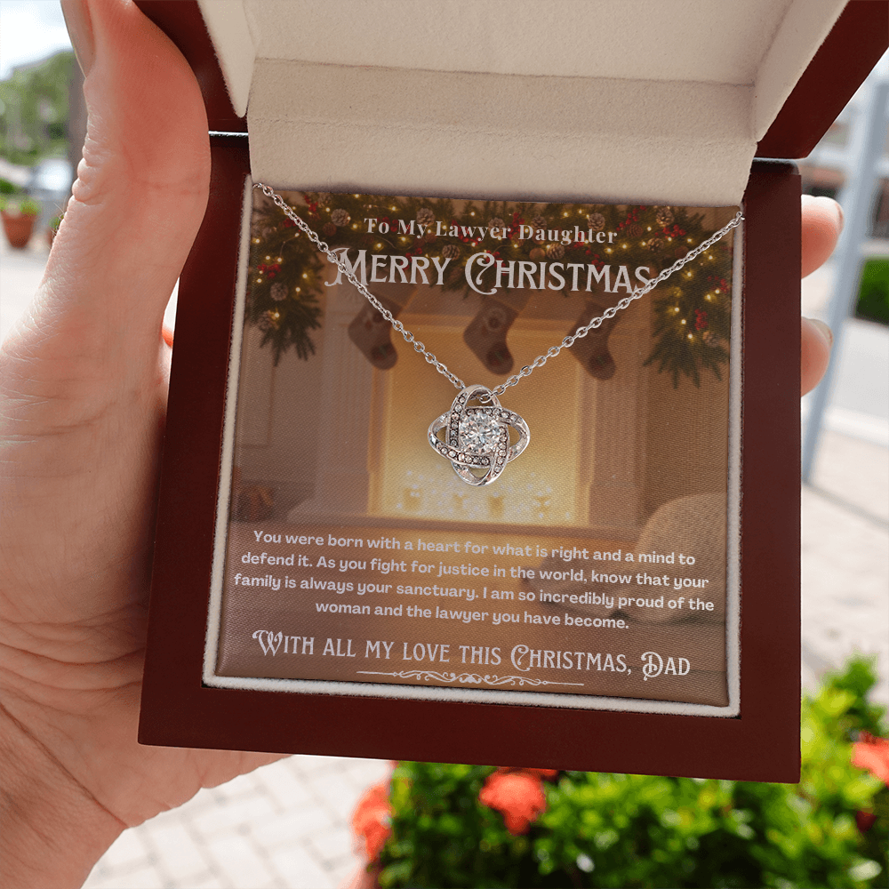 This Christmas, honor your brilliant daughter with a gift that symbolizes the unbreakable bond 🔗 you share and the enduring strength of her character. The Love Knot Necklace perfectly reflects the connection between your souls, a bond as firm and unwavering as her dedication to justice.