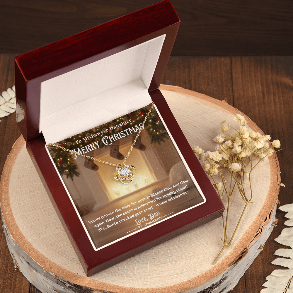 This Christmas, celebrate your brilliant daughter with a gift that recognizes her sharp mind and well-earned holiday break. The Love Knot Necklace is a beautiful symbol of the unbreakable bond you share, reminding her that while she's busy proving cases, her family's love is already proven.