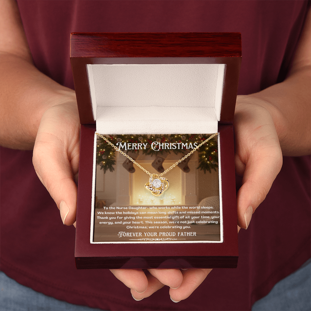 This Christmas, celebrate your daughter—the hero "who works while the world sleeps." This message of profound thanks pairs perfectly with the Love Knot Necklace, a symbol of the unbreakable bond 🔗 that endures through every long shift and missed moment.